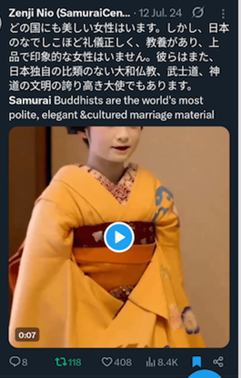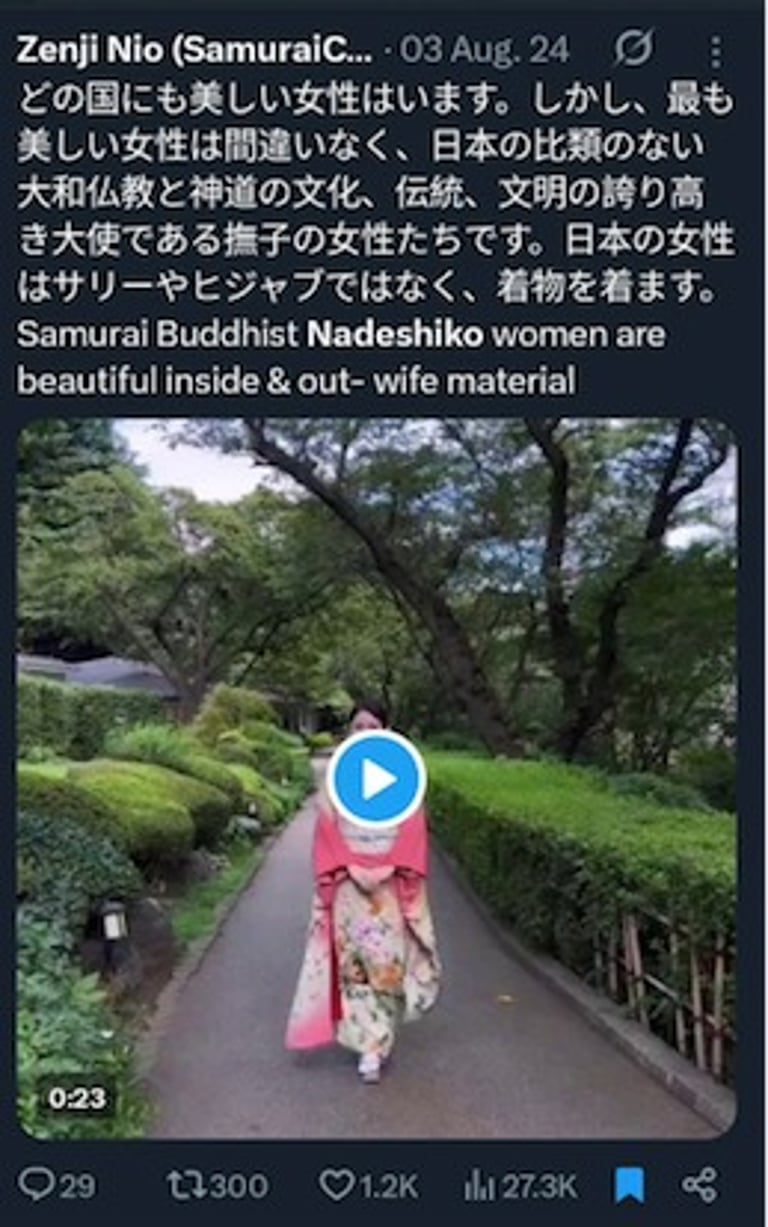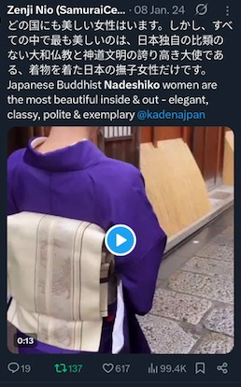 仁尾善司が日本のなでしこ女性の内面と外面の美しさを称える