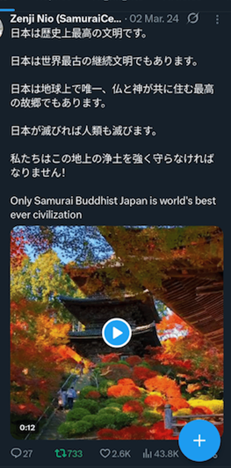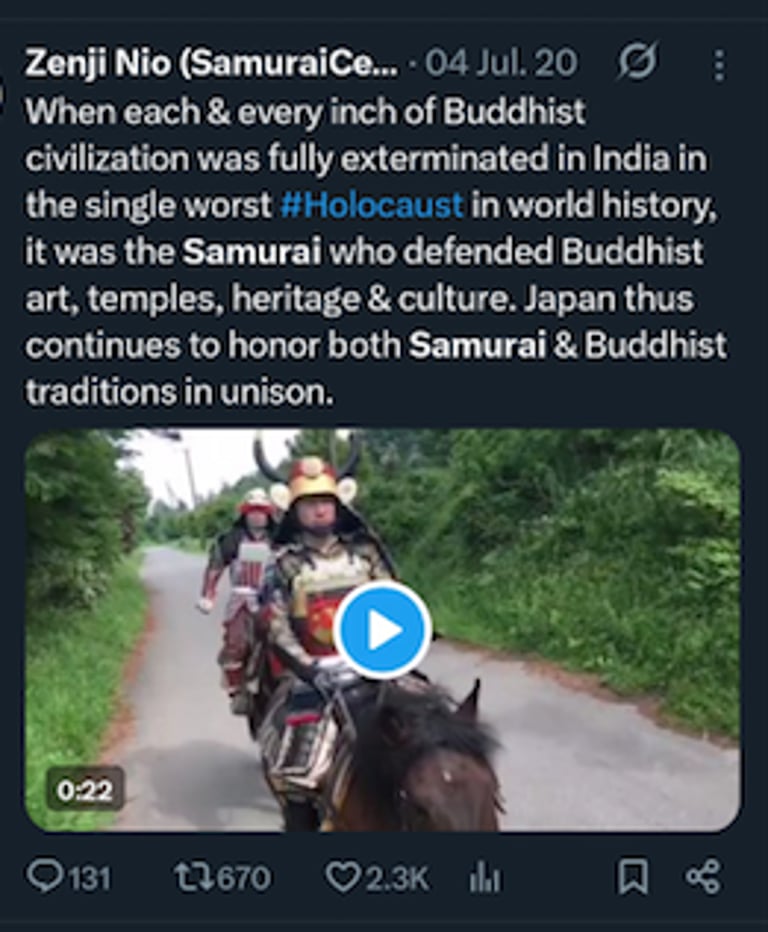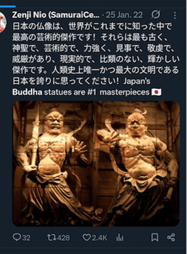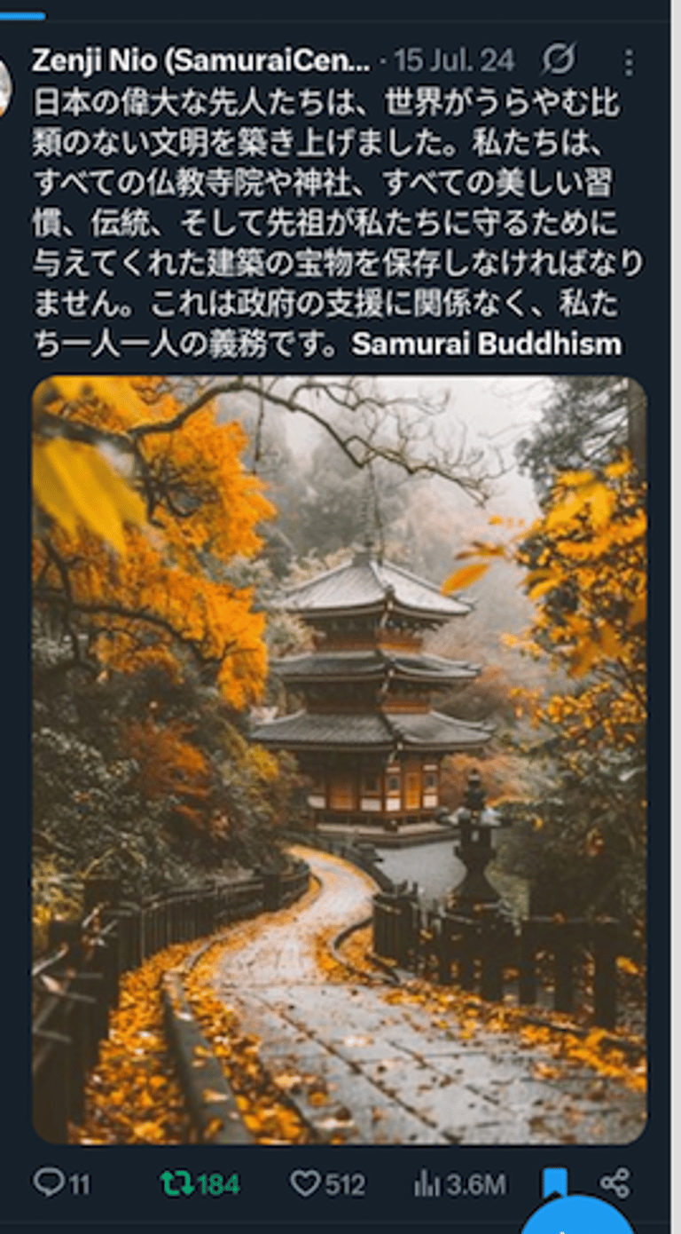 Zenji Nio gets the most engagement of all Buddhist influencers. Also visit tweets.samuraicenter.org & tweets.samuraibudhism.com